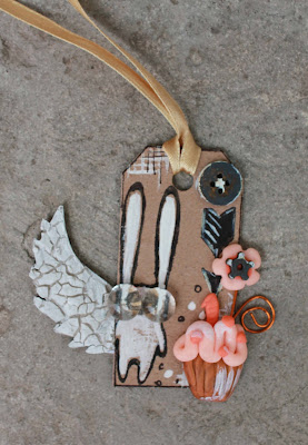штамп "Заяц", крыло покрыла фацетным лаком и добавила белый акрил. Глазки - стёклышки, а праздничный торт с единичкой вылепила из запекаемой полимерной глины. С ДНЁМ РОЖДЕНИЯ !)